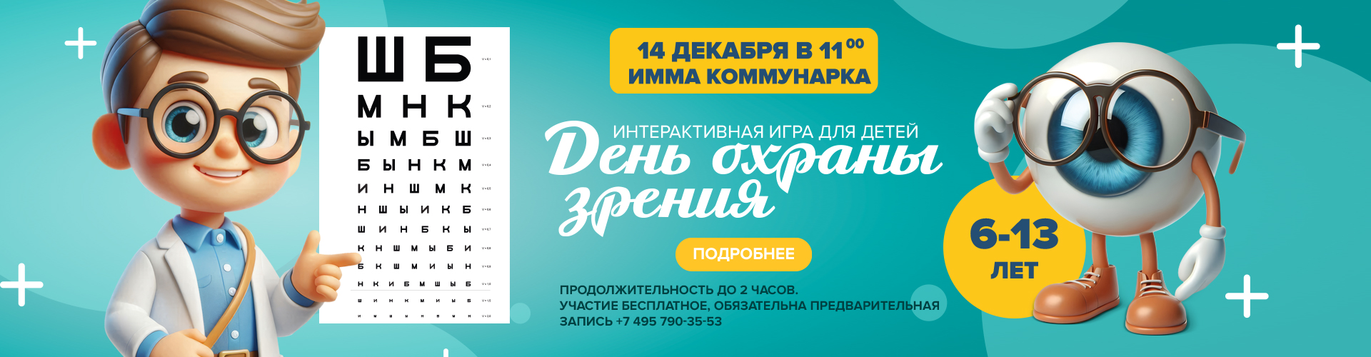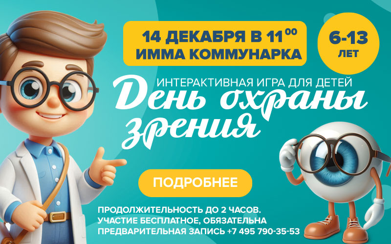 14 декабря в 11.00 в клинике в Коммунарке в К2 пройдет интерактивная познавательная игра для детей «День охраны зрения»!