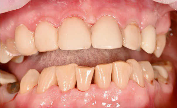 Пациент обратился в клинику с запросом на улучшение эстетики центральной группы нижних зубов. Со слов пациента, со временем внешний вид зубов стал вызывать выраженный психологический дискомфорт: появились заметные изменения цвета, неровности и дефекты в пришеечной области. Пациент отмечал, что стал стесняться улыбаться и испытывал неуверенность при общении.