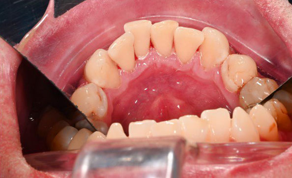 В ходе первичного осмотра выявлено значительное количество пигментированного налета и твердых зубных отложений, особенно в пришеечной области и на внутренней поверхности зубов. Также отмечались признаки воспаления десен, характерные для начальных проявлений гингивита. Пациенту были даны рекомендации по проведению комплексной профессиональной гигиены полости рта.