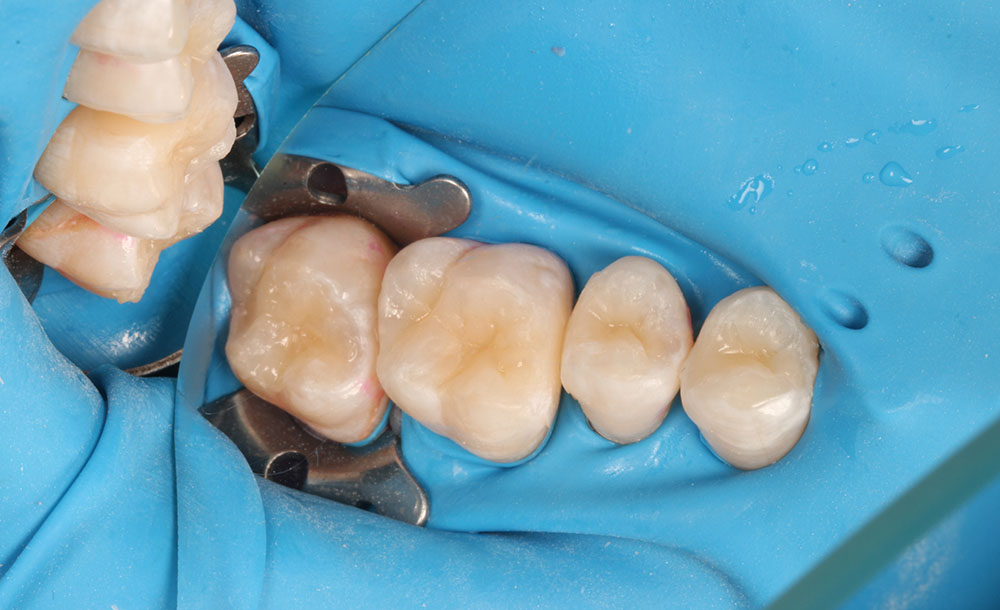 Пациент обратился с жалобами на множественные кариесы 1.7 1.6 1.5 1.4 зубов. Проведена реставрационная работа с восстановлением жевательной функции зубов с использованием композитного материала Estelite
