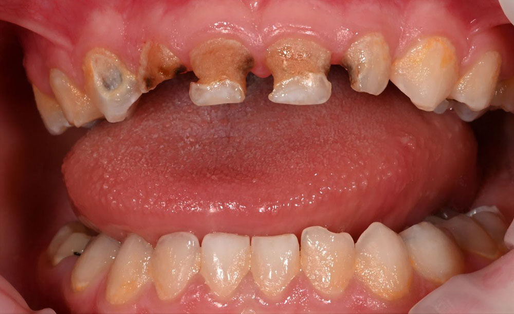 Но проблема в том, что молочные зубы более восприимчивы к кариесу, чем постоянные. Поэтому у одного пациента во рту наблюдается кариозное поражение сразу нескольких зубов. Кариес пребывает на разных стадиях развития. Некоторые зубы ещё можно лечить консервативно, другие в значительной степени разрушены: их придется пломбировать или протезировать коронками.